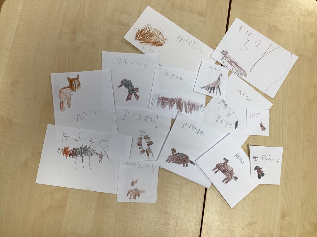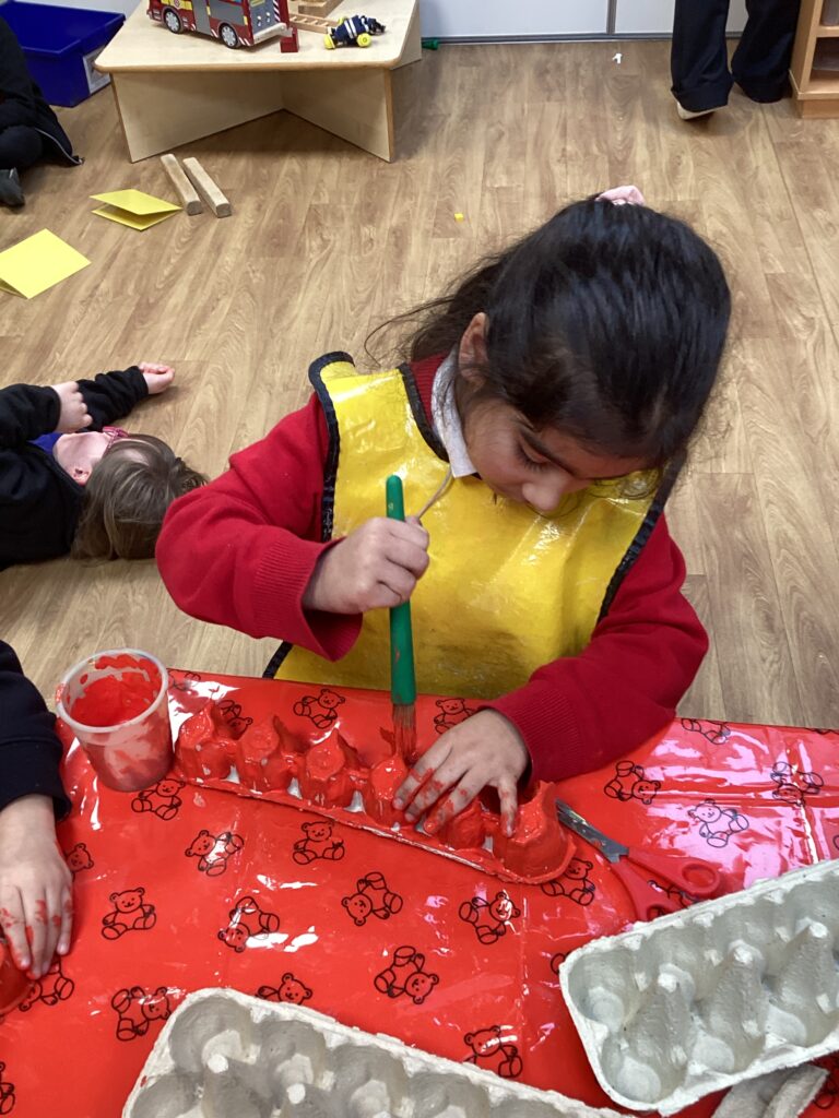We discovered that all birds: have feathers; lay eggs; have a beak instead of teeth and have wings (but not all birds fly). After enjoying the book, ‘A Busy Day for Birds’ by Lucy Cousins, we went on our own birdwatch around the school grounds. Some children even brought in their own binoculars and books about birds later in the week. Can the children recall which birds they spotted or heard?