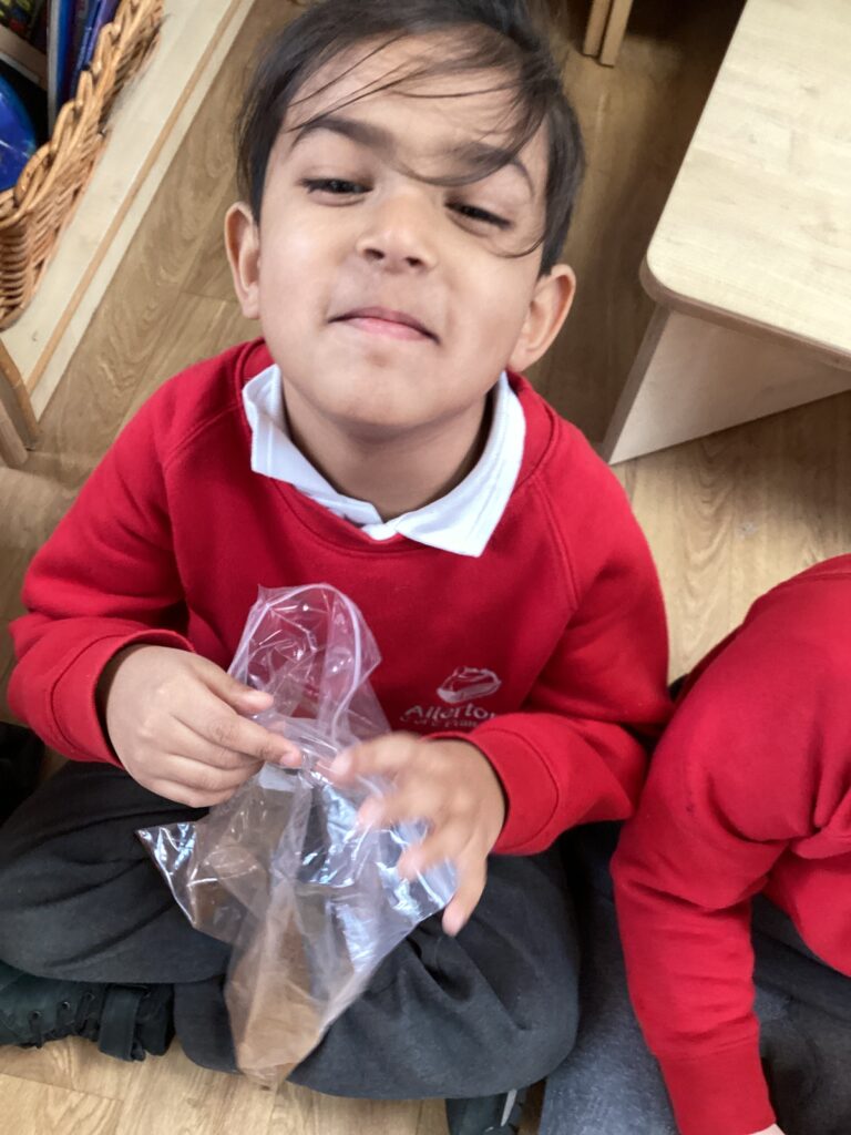 Some of us chose to brave the chilly weather and dig for worms with Mrs Shazedi and then we talked about what our new friends looked like and how they moved.