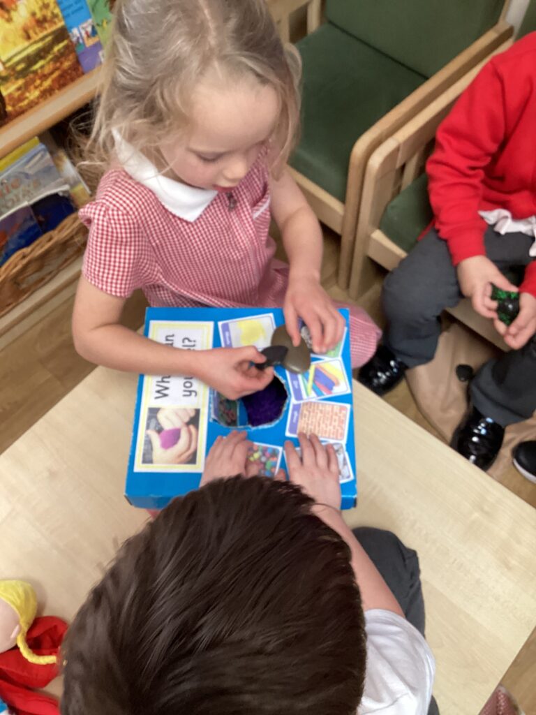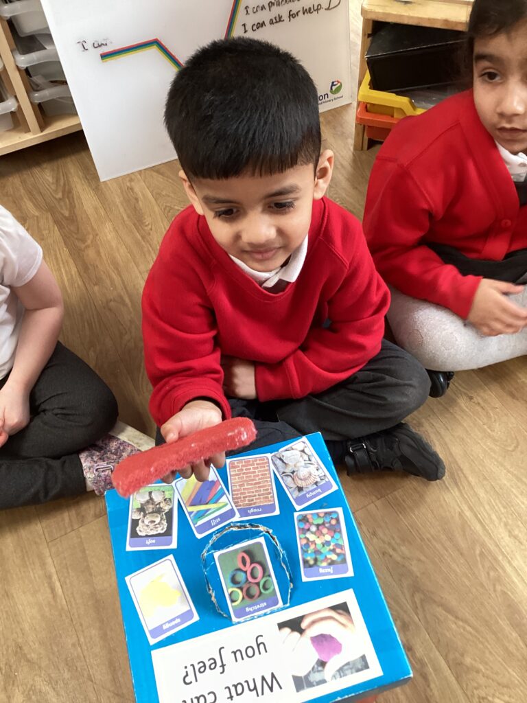 We dared to dip our hands into the feely box to try and identify the objects in there. Were they bumpy, smooth, rough, soft, hard, furry? Again, we considered how our senses keep us safe; we drop objects, that feel hot, so they do not damage our skin.