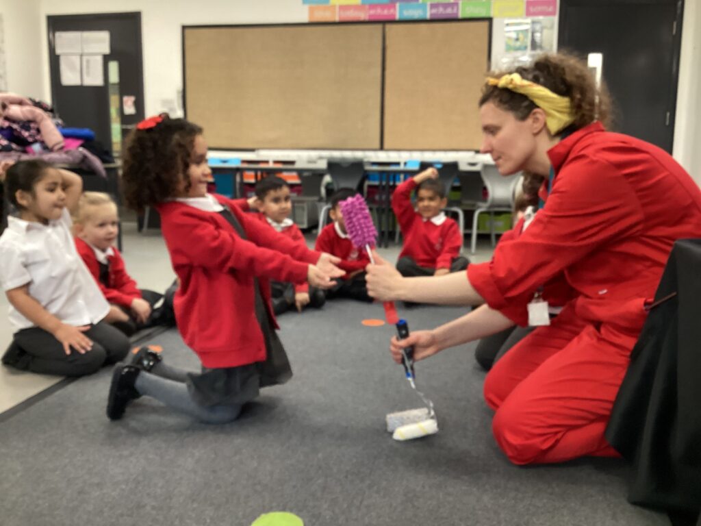 On Thursday, Jenny, a World Friendship Ambassador (from Bigfoot Arts Education), invited RS into a make-believe school. We met Tommy and Sally, two friendly puppet characters, who were sad because they experienced unkindness. Through song, simple role-play, mime and still-image freeze frames, the children practised their own super powers of talking, kindness, calm thinking and bravery to comfort the characters, make friendly choices and learn how to ask for help.