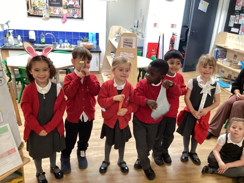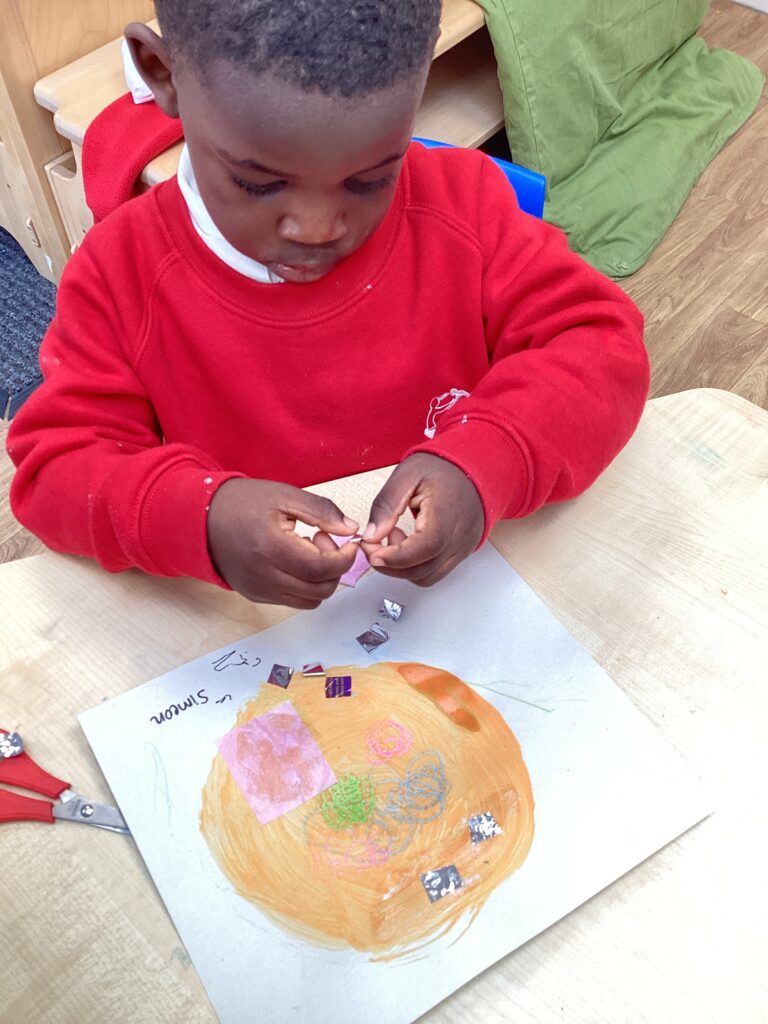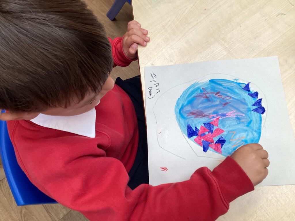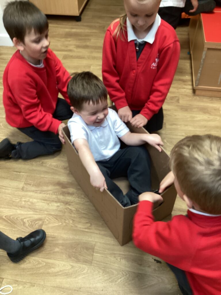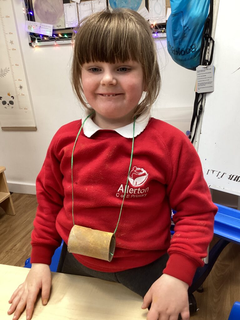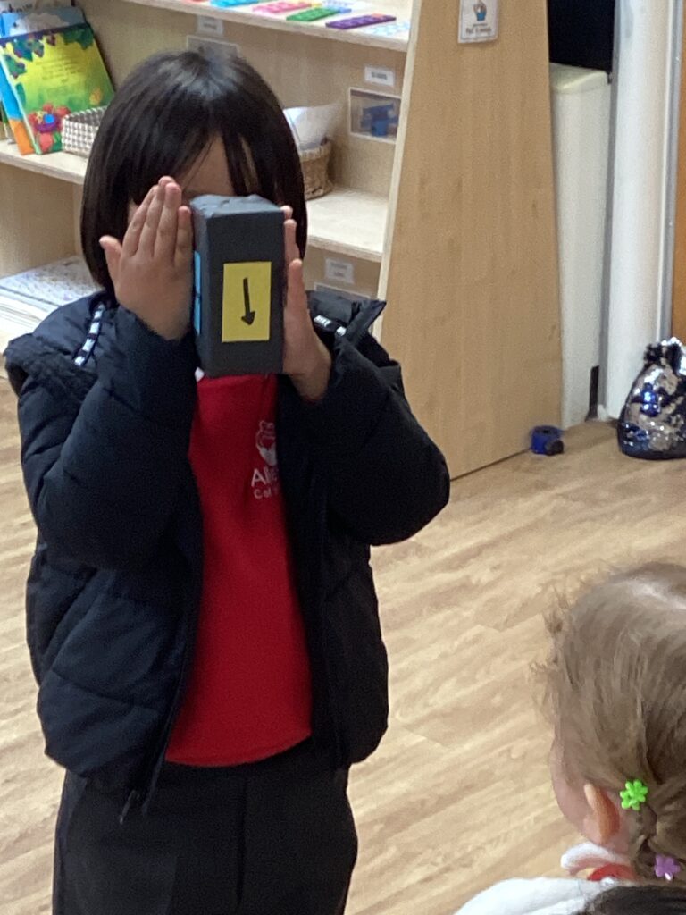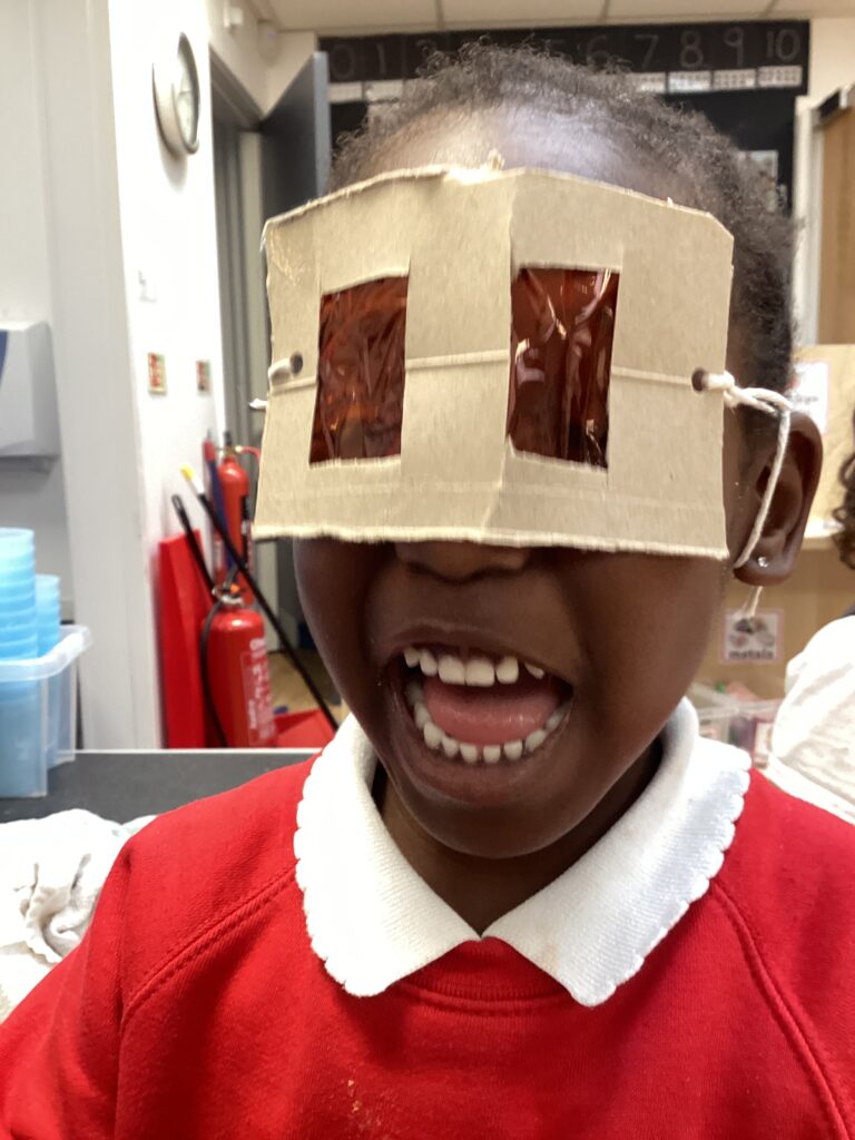 We created some traffic lights that tell us whether to sit, jump, twirl or put our arms out wide. Evie invented a “collar” for “scaring away fireworks”. Oscar’s bus took him on an underwater treasure hunt. Our new glasses gave us an orange perspective on the classroom. I wonder what other inventions we can think of?