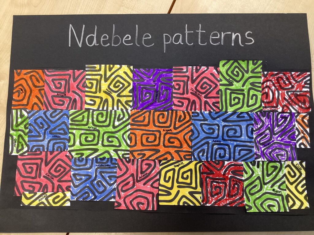 After looking at some beautiful African art and noticing the colours and shapes, we had a go at making a class Ndebele pattern.