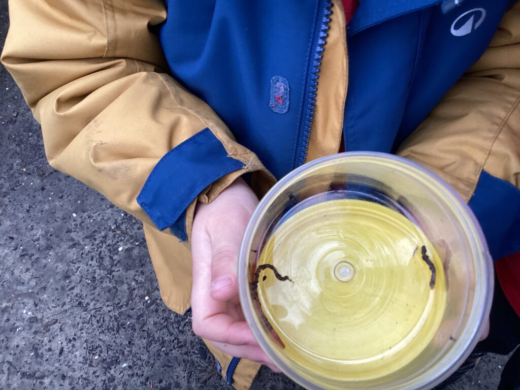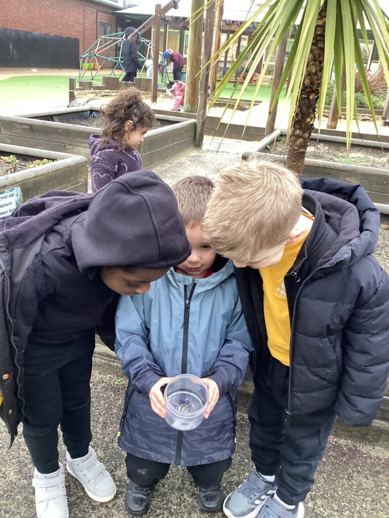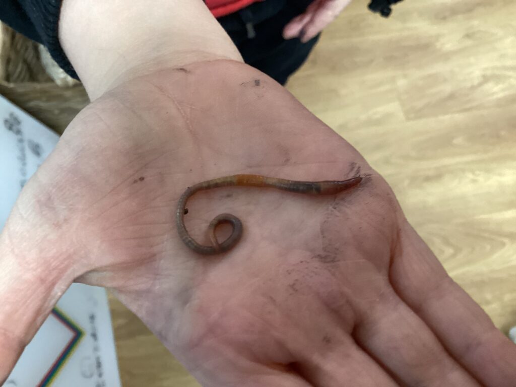 Some of us chose to brave the chilly weather and dig for worms with Mrs Shazedi and then we talked about what our new friends looked like and how they moved.