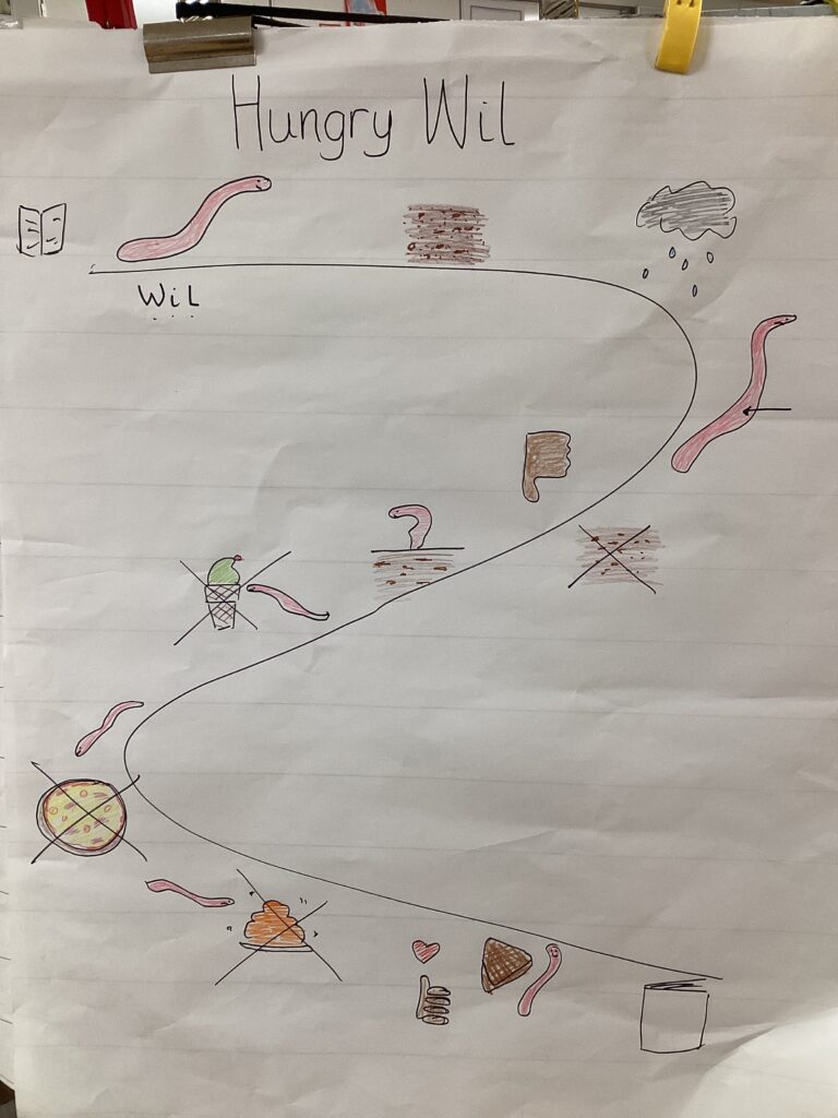 On Friday, the worm in our own storytelling session – Wil (Wilma/Wilbur) – thought that earth tasted disgusting so went in pursuit of tastier alternatives. Can the children tell you which foods their worm did and did not enjoy?