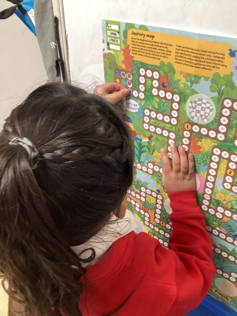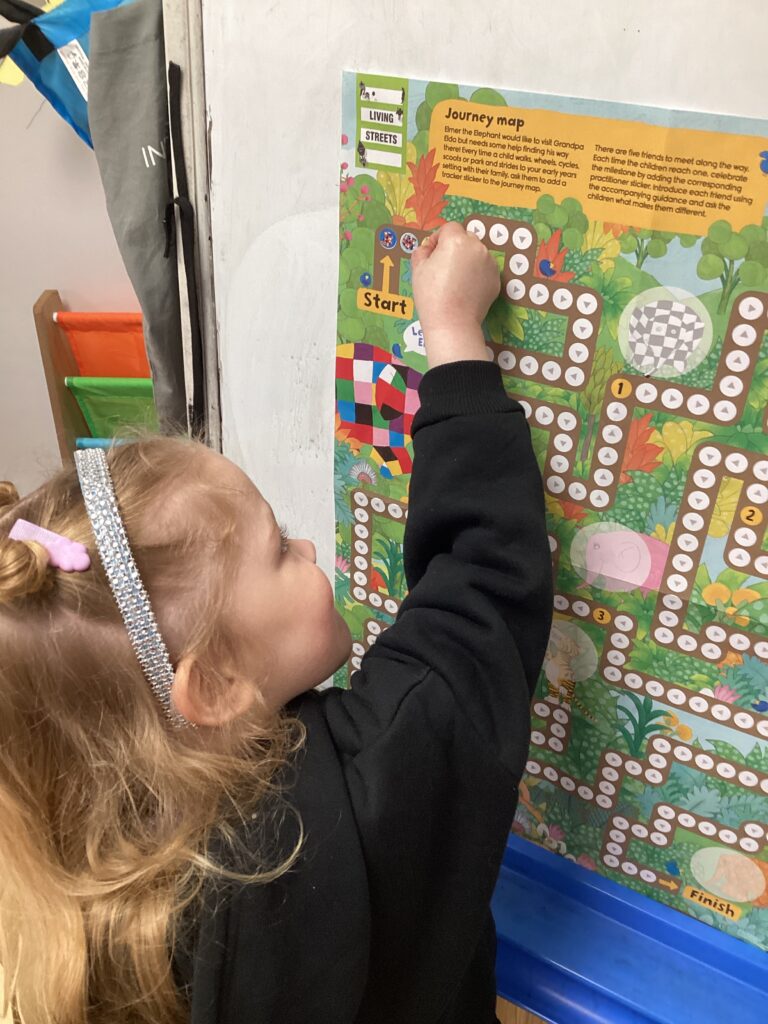 Courtney joined us with her Elmer puppet to introduce us to the Little Feet initiative, which is designed to encourage us to walk and wheel more often. Courtney posed the question of why it is good to move our feet. “It gives us exercise.” Well done, Evie! We showed Elmer our muscles and talked about how, as well as being good for our bodies and minds to start the day with a walk, cycle or scoot, it is also good for the environment: reducing smelly pollution near school. Elmer loves to walk to school as it gives him the opportunity to notice the nature all around him. Courtney encouraged us to take care when we come across roads on our walk to school: we should stop, look both ways and listen for traffic before we cross. We need to think, ‘Is it safe?’. Which Reception class will make the biggest effort to walk or wheel to school and fill their sticker chart first, completing the Little Feet mission?